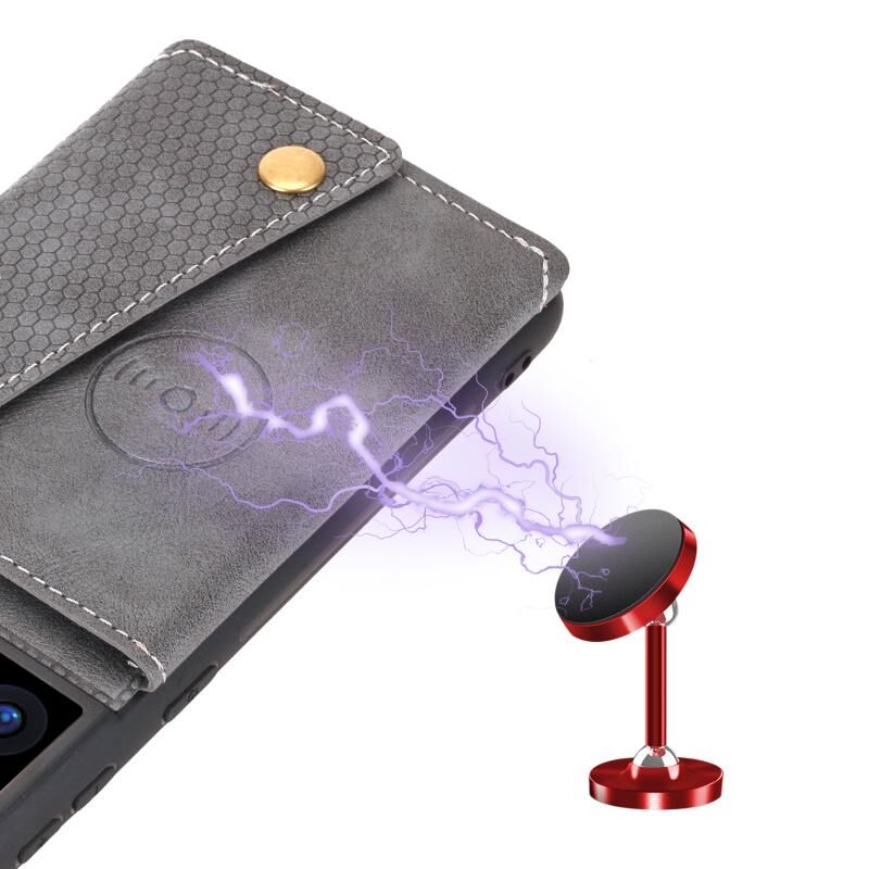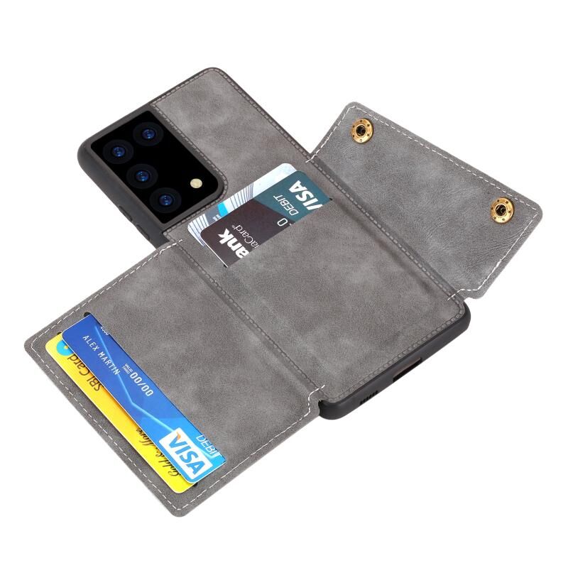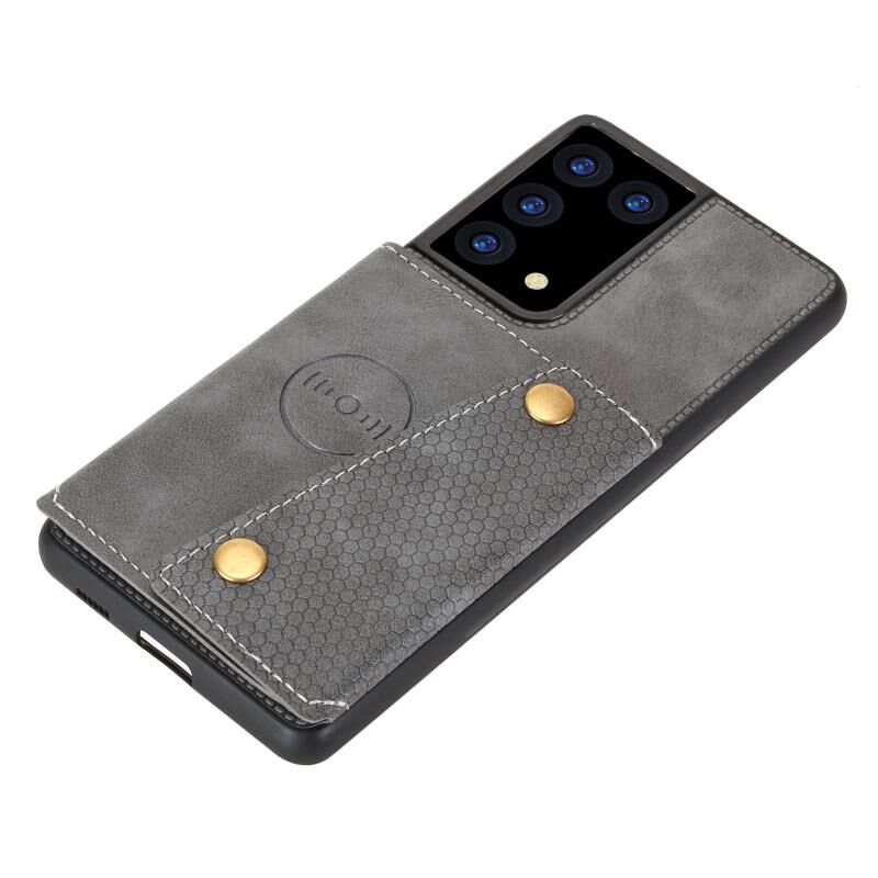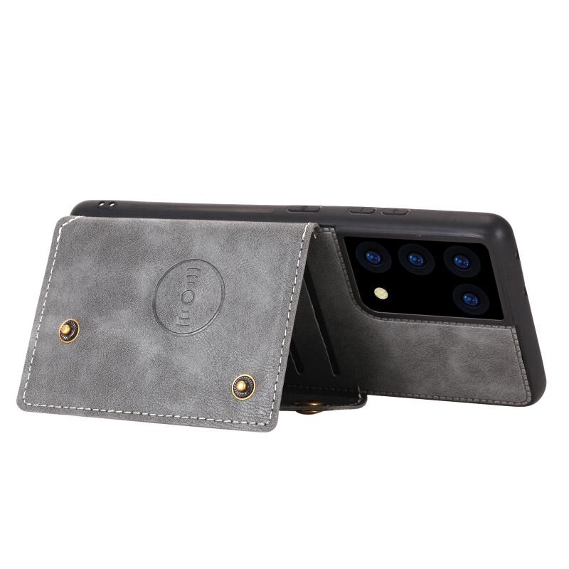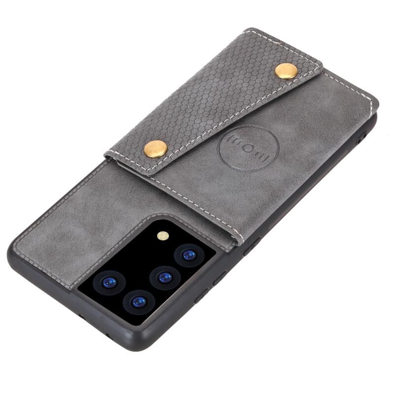 Για Samsung Galaxy S21 Ultra 5G Διπλή πόρπη PU + TPU Shockproof μαγνητική προστατευτική θήκη με υποδοχή κάρτας & κάτοχος (γκρι)