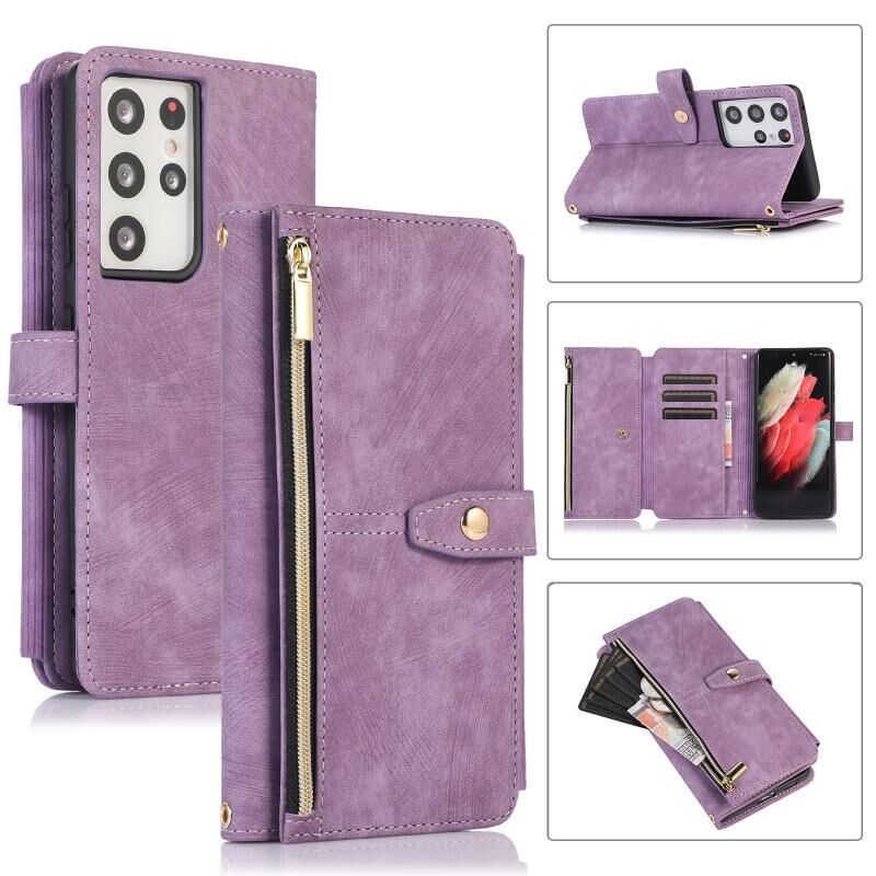 Για Samsung Galaxy S21 Ultra 5G Dream 9-κάρτα πορτοφόλι φερμουάρ τσάντα δερμάτινη θήκη τηλεφώνου (μωβ)