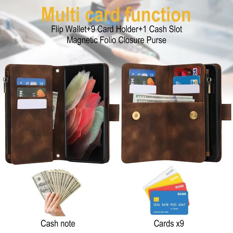 2. Λειτουργία πορτοφολιού πολλαπλών καρτών: 9 υποδοχές για κάρτες και 1 θήκη μετρητών με φερμουάρ για να αποθηκεύετε τις πιστωτικές σας κάρτες, μετρητά ή μικρά χαρτονομίσματα για τις καθημερινές σας ανάγκες.