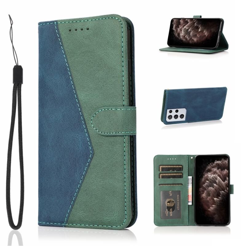 Για Samsung Galaxy S21 Ultra 5G Διπλό χρώμα ραφή δερμάτινη θήκη τηλεφώνου (μπλε πράσινο)