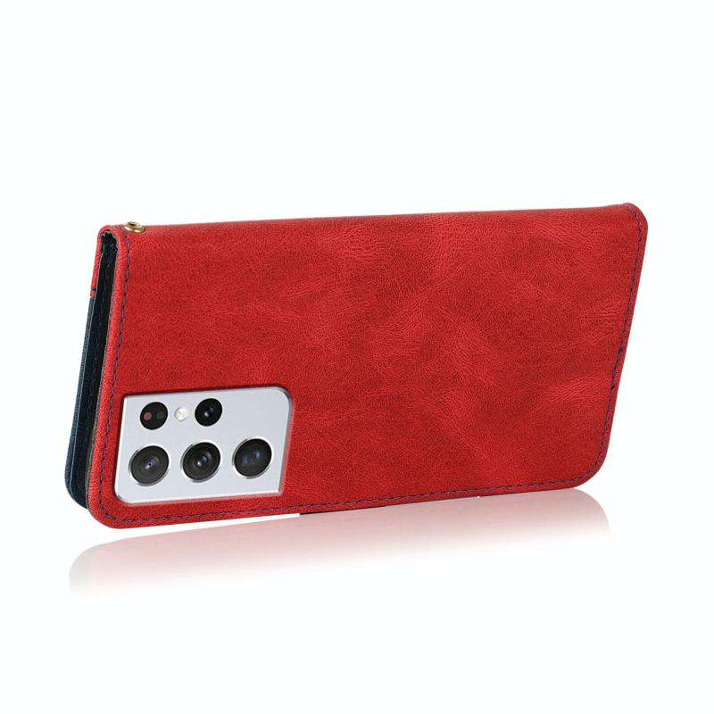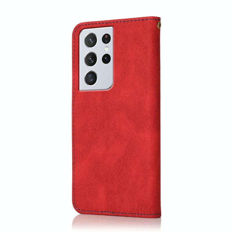 Θήκη τηλεφώνου από δέρμα με διπλή ραφή για Samsung Galaxy S21 Ultra 5G (Κόκκινο Μπλε)