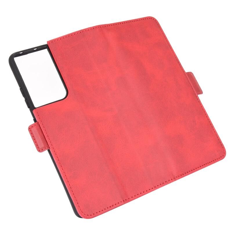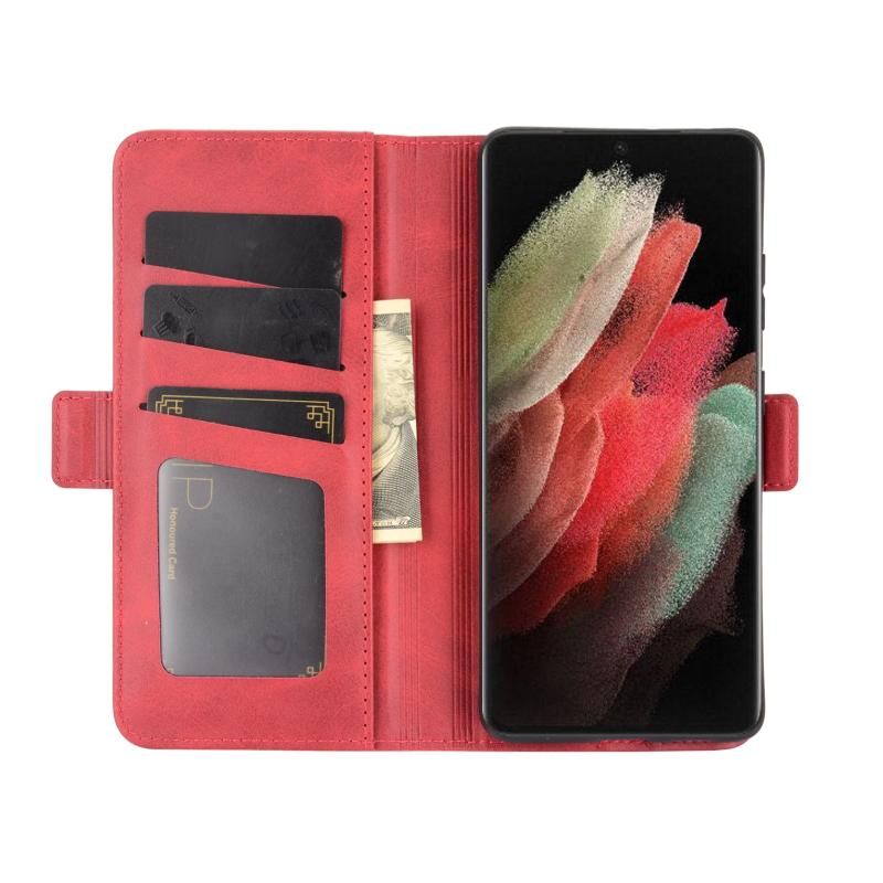 Θήκη δέρματος οριζόντιας αναδίπλωσης με μαγνητική αγκράφα διπλής όψης για Samsung Galaxy S21 Ultra 5G με βάση & υποδοχές καρτών & πορτοφόλι (Μαύρο)