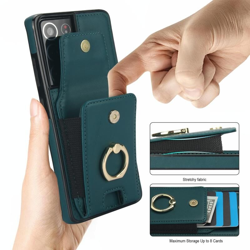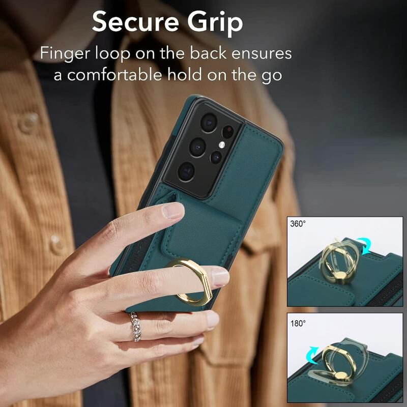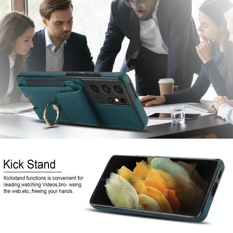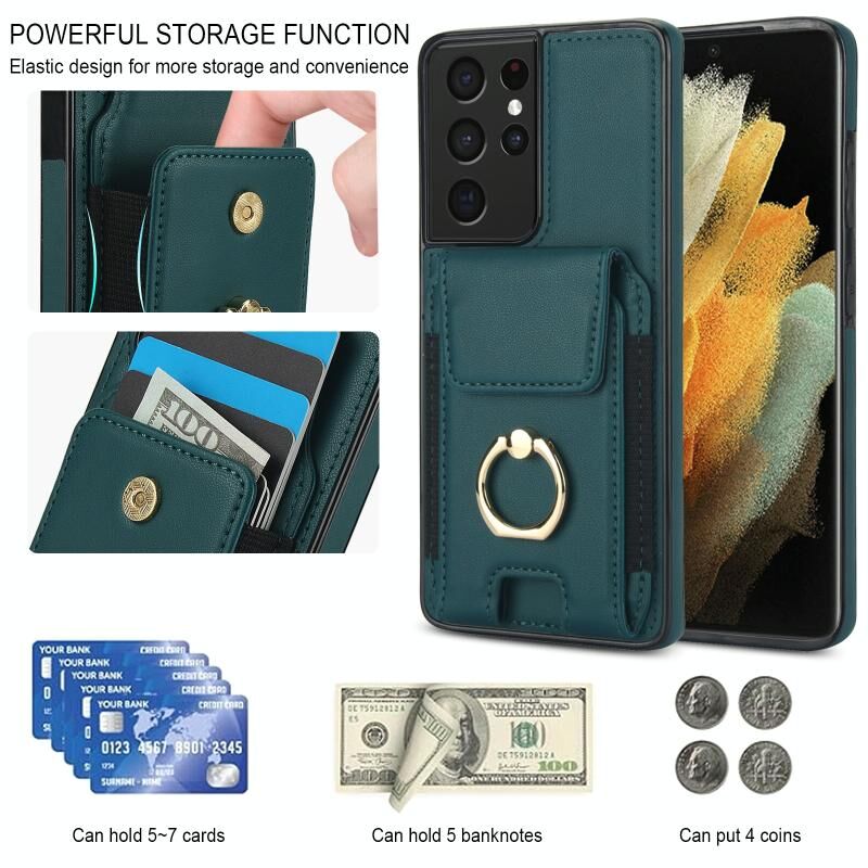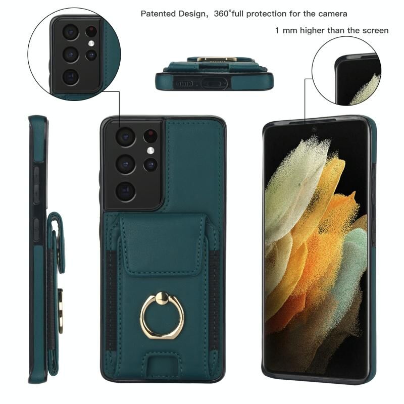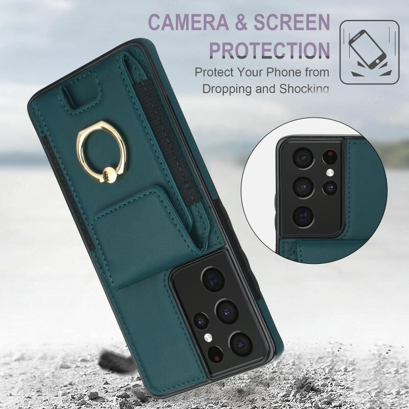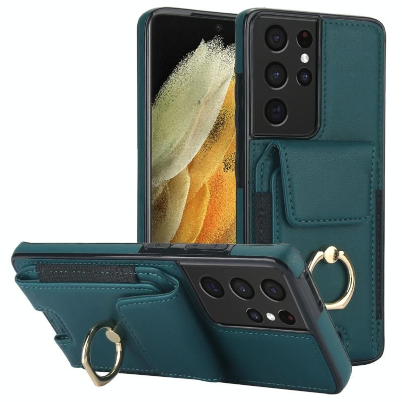 Για Samsung Galaxy S21 Ultra 5G Ελαστική κάρτα τσάντα δαχτυλίδι τσάντα κάτοχος υπόθεση τηλεφώνου (σκούρο πράσινο)