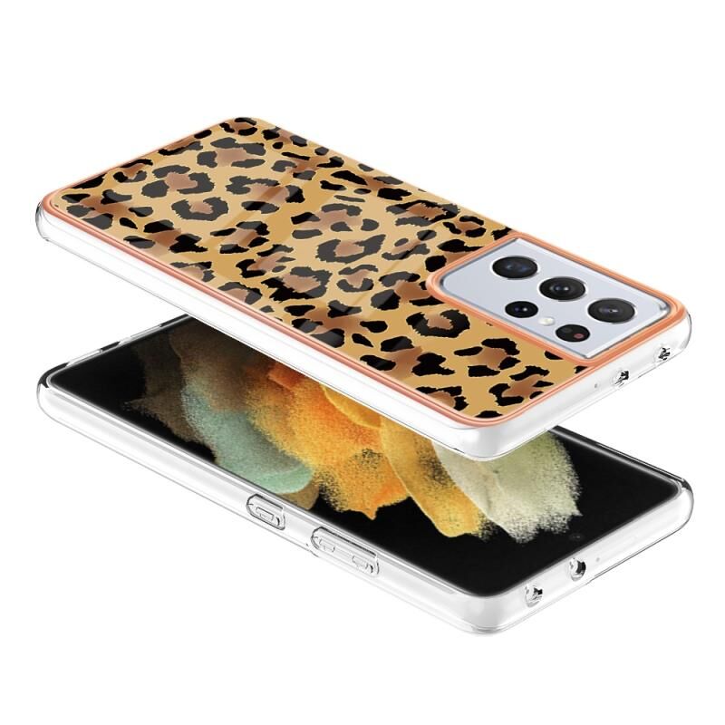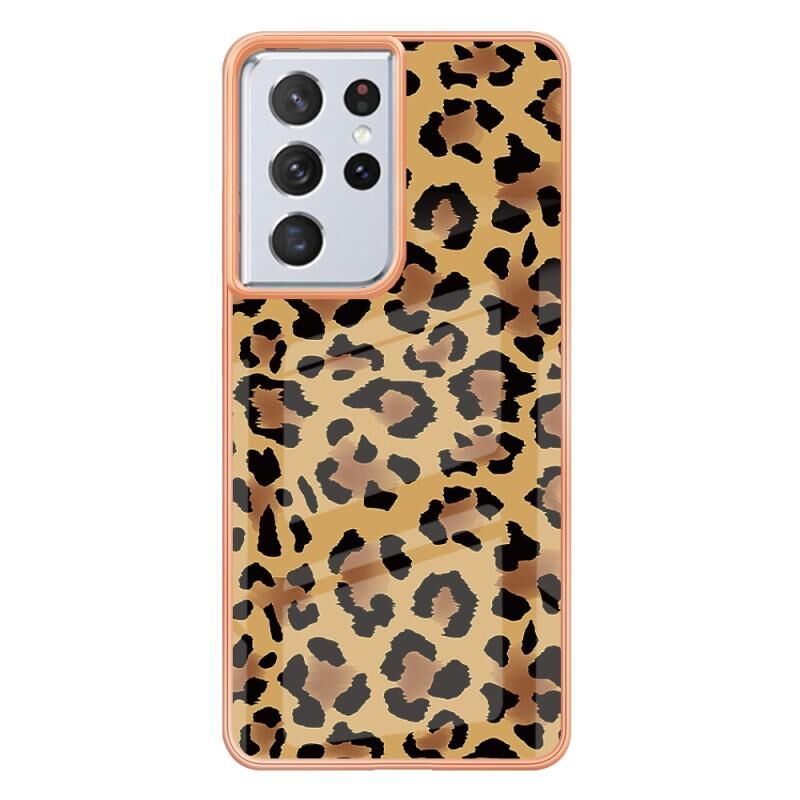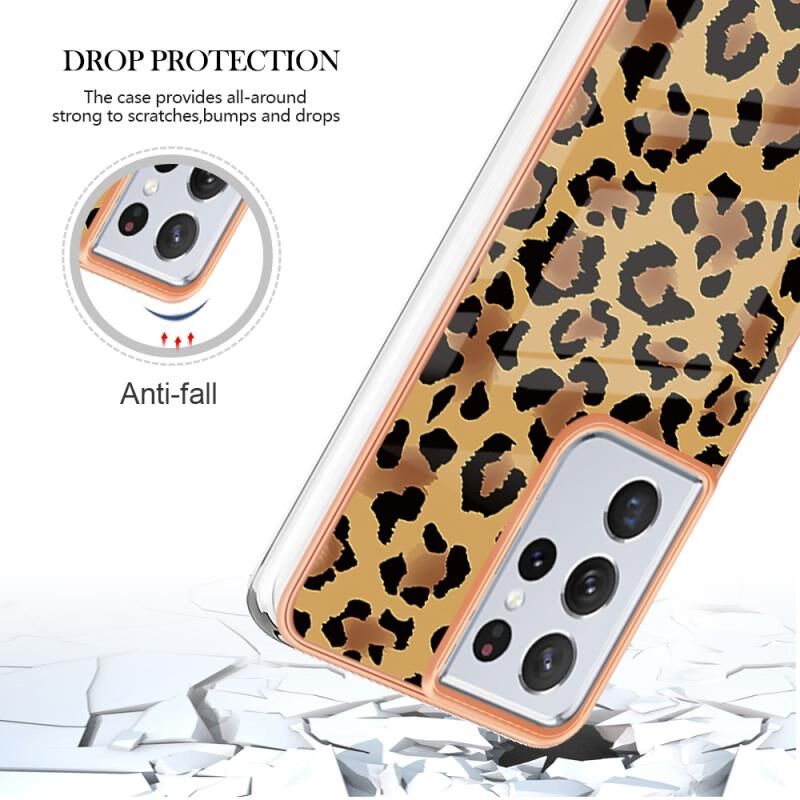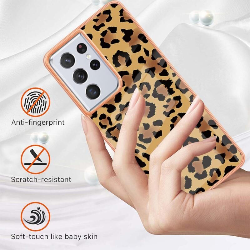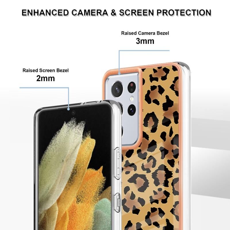 Θήκη τηλεφώνου για Samsung Galaxy S21 Ultra 5G με ηλεκτρολυτική μαρμάρινη όψη IMD διπλής όψης (εκτύπωση λεοπάρδαλης)