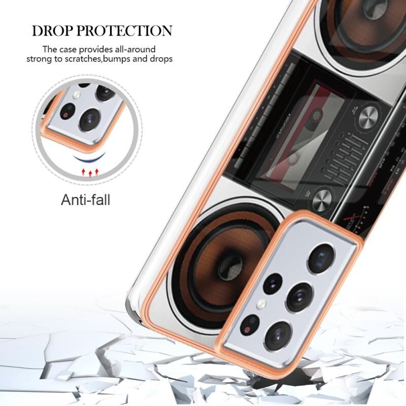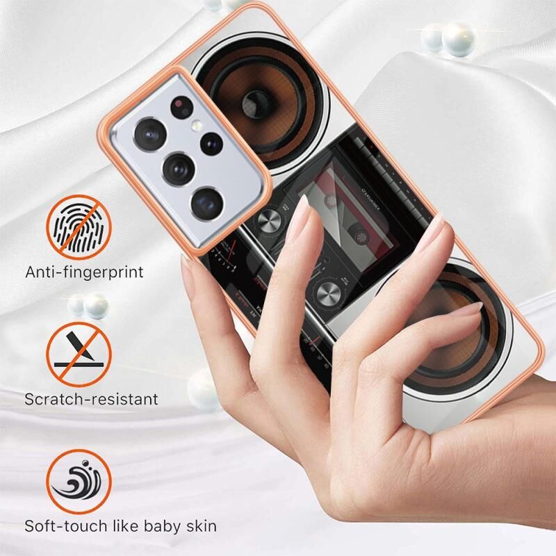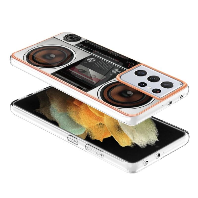 Θήκη τηλεφώνου για Samsung Galaxy S21 Ultra 5G, με ηλεκτρολυτική μαρμάρινη όψη IMD διπλής όψης (Ρετρό Ραδιόφωνο)