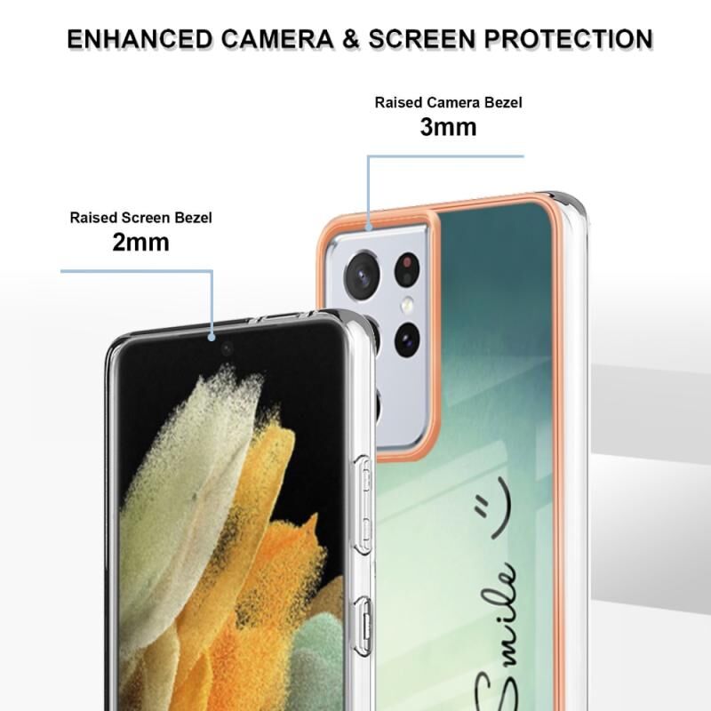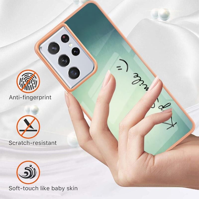 Θήκη τηλεφώνου για Samsung Galaxy S21 Ultra 5G, με ηλεκτρολυτική μαρμάρινη επένδυση IMD διπλής όψης (Χαμόγελο)