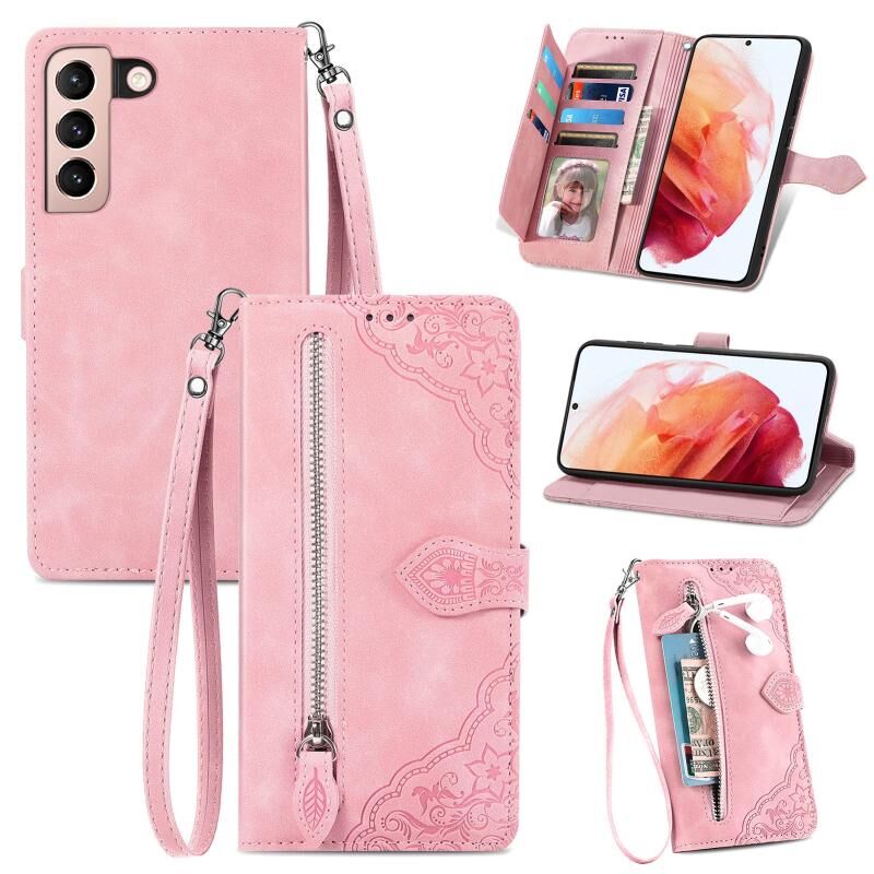 Για Samsung Galaxy S21 Ultra 5G ανάγλυφο λουλούδι Shockproof δέρμα τηλέφωνο υπόθεση (ροζ)