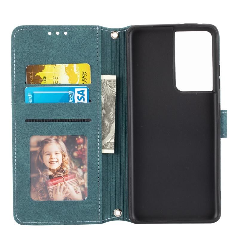 Για Samsung Galaxy S21 Ultra 5G ανάγλυφη ριγέ μαγνητική πόρπη PU + TPU οριζόντια Flip δερμάτινη θήκη με θήκη & υποδοχή κάρτας & πορτοφόλι & κορνίζα φωτογραφιών & σφεντόνα (πράσινο)