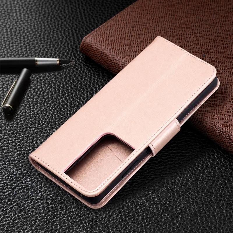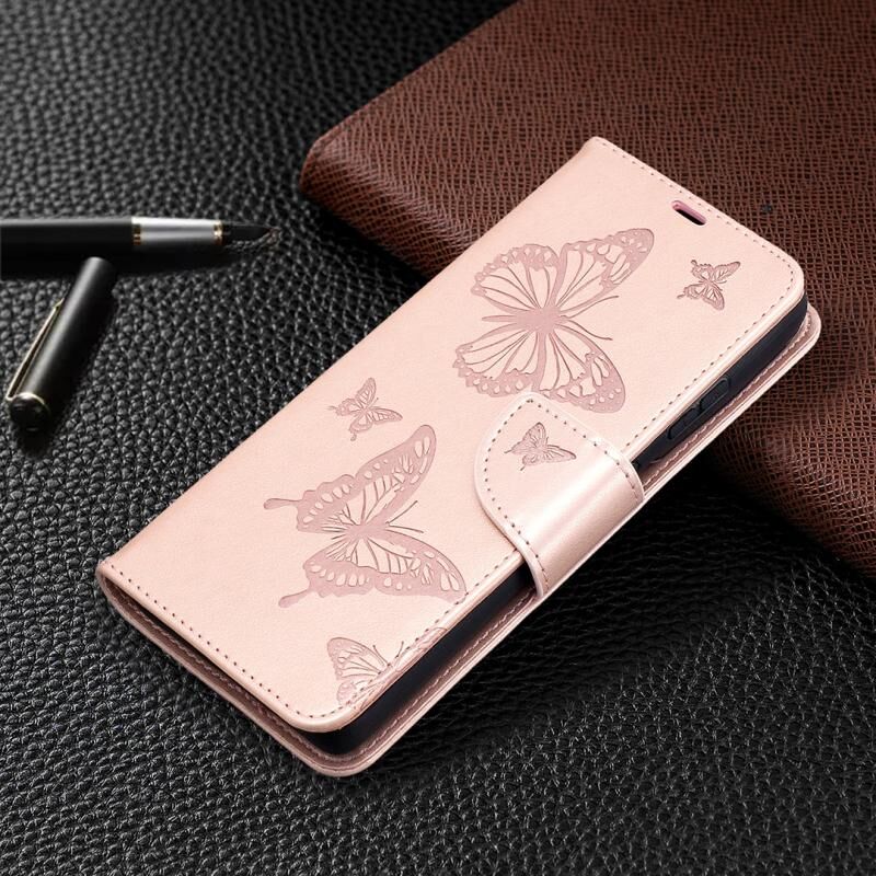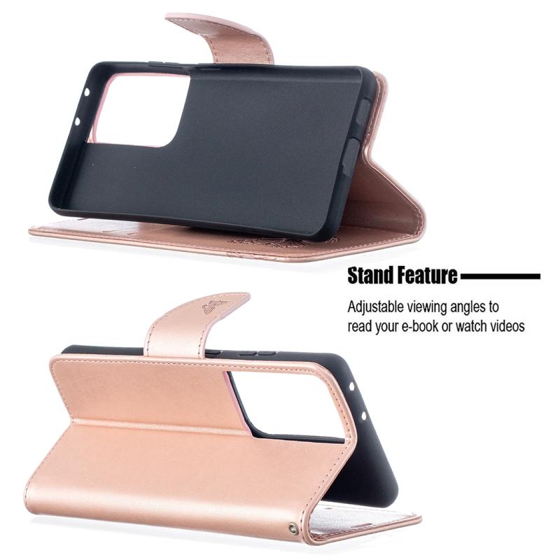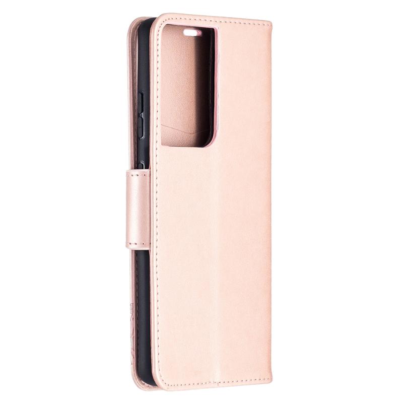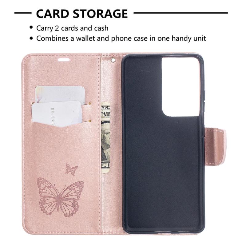 For Samsung Galaxy S21 Ultra 5G Embossing Two Butterflies Pattern Horizontal Flip PU Leather Case with Holder & Card Slot & Wallet & Lanyard(Rose Gold)