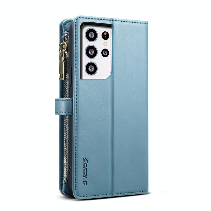 Για Samsung Galaxy S21 Ultra 5G Θήκη Δερμάτινη με RFID, Πορτοφόλι με Φερμουάρ και Λουρί Λαιμού Σειράς Star (Μαύρο) (ESEBLE)