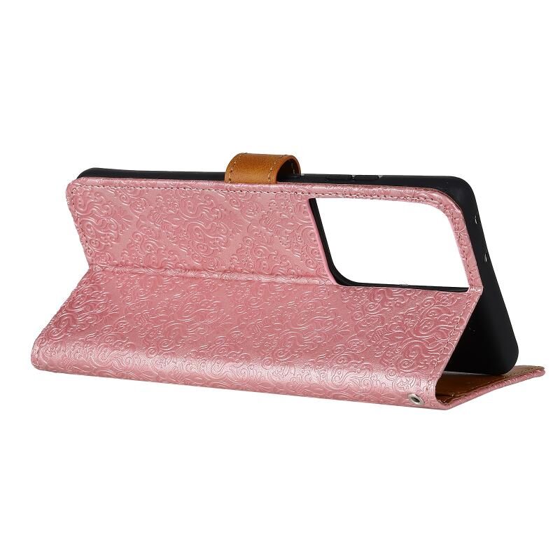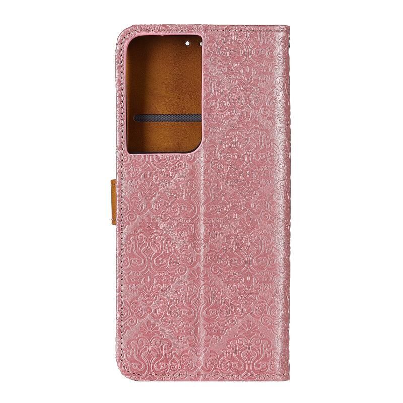 Για Samsung Galaxy S21 Ultra 5G Ευρωπαϊκή Floral ανάγλυφο χαλκό πόρπη οριζόντια Flip PU δέρμα υπόθεση με θήκη & υποδοχές για κάρτες & πορτοφόλι & κορνίζα φωτογραφιών (ροζ)