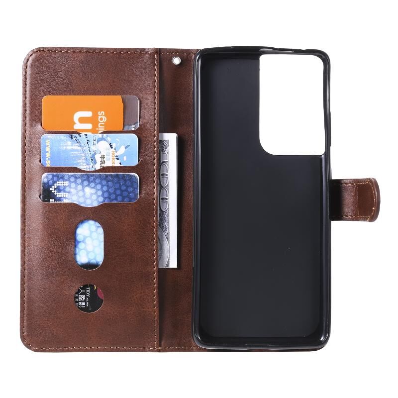 Για Samsung Galaxy S21 Ultra 5G Μόδα μοσχάρι υφή φερμουάρ οριζόντια Flip δερμάτινη θήκη με θήκη & υποδοχές για κάρτες & πορτοφόλι (καφέ)