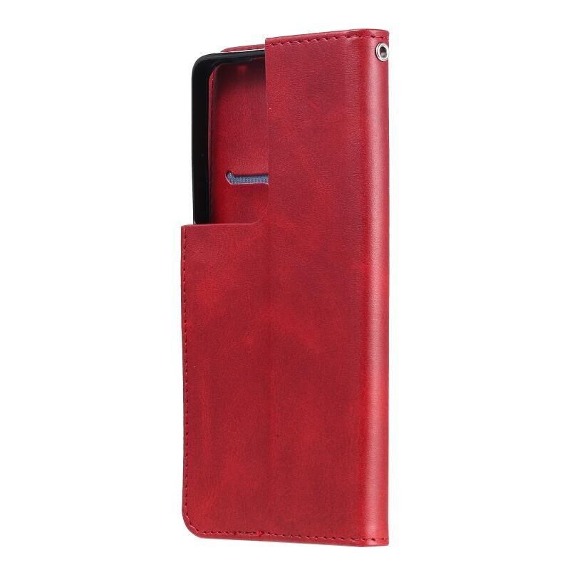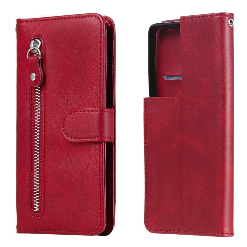 Για Samsung Galaxy S21 Ultra 5G Μόδα μοσχάρι υφή φερμουάρ οριζόντια Flip δερμάτινη θήκη με θήκη & υποδοχές για κάρτες & πορτοφόλι (κόκκινο)