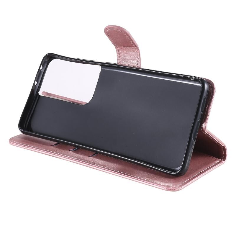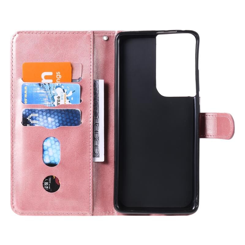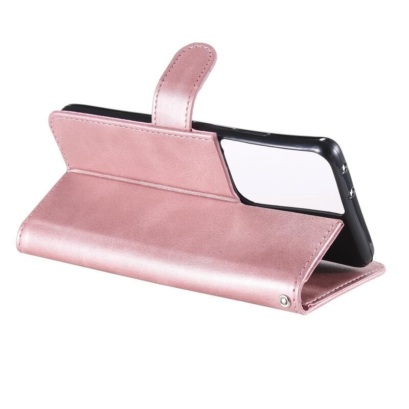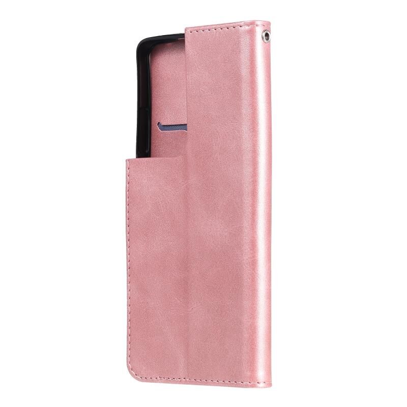 Για Samsung Galaxy S21 Ultra 5G μόδας μοσχάρι υφή φερμουάρ οριζόντια Flip δερμάτινη θήκη με θήκη & υποδοχές για κάρτες & πορτοφόλι (Rose Gold)