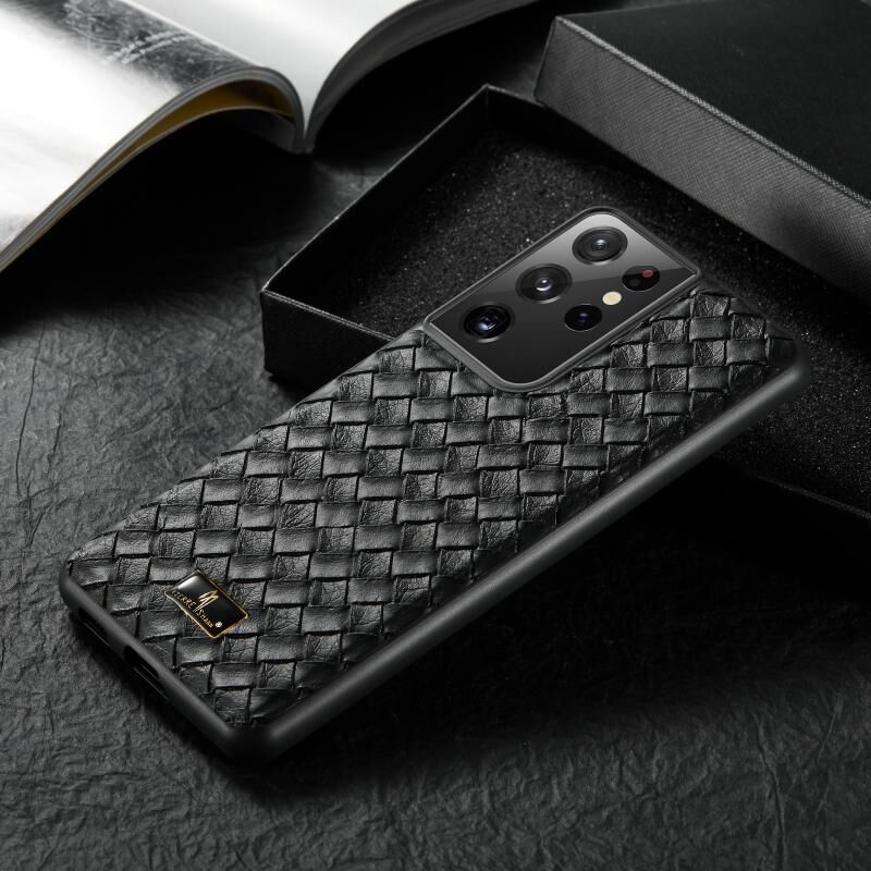 For Samsung Galaxy S21 Ultra 5G Fierre Shann Leather Texture Phone Back Cover Case(Woven Black) (FIERRE SHANN)