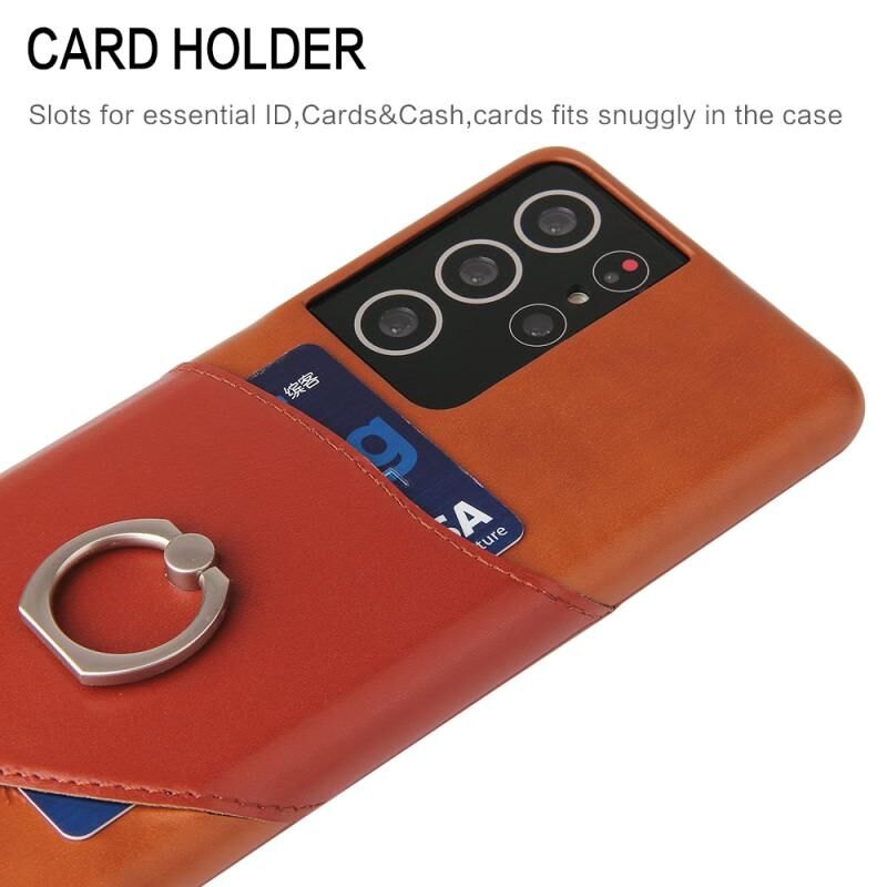 Θήκη για Samsung Galaxy S21 Ultra 5G Fierre Shann από γνήσιο δέρμα με υφή λαδιού και κεριού, με περιστρεφόμενη βάση 360 μοιρών & θήκη για κάρτες (Μαύρο) (FIERRE SHANN)