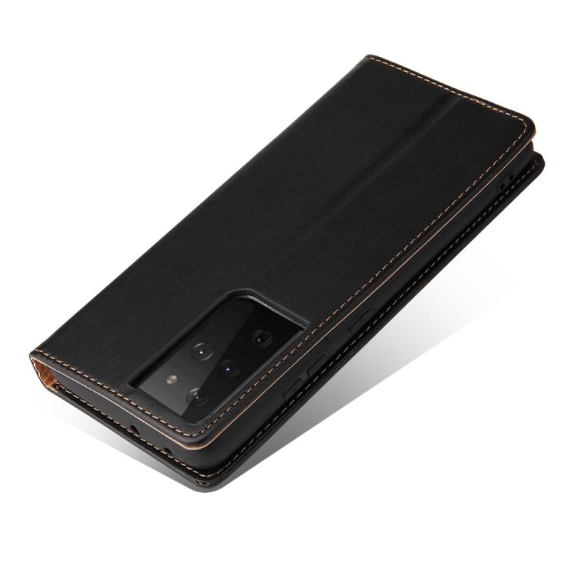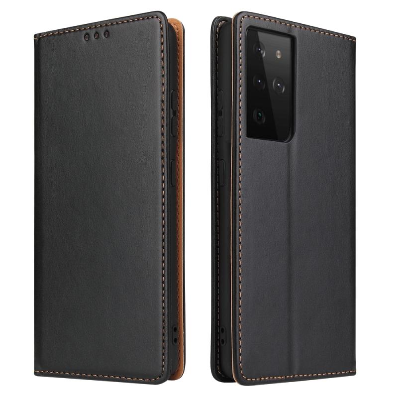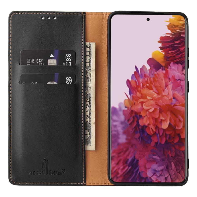 For Samsung Galaxy S21 Ultra 5G Fierre Shann PU Genuine Leather Texture Horizontal Flip Leather Case with Holder & Card Slots & Wallet(Black) (FIERRE SHANN)