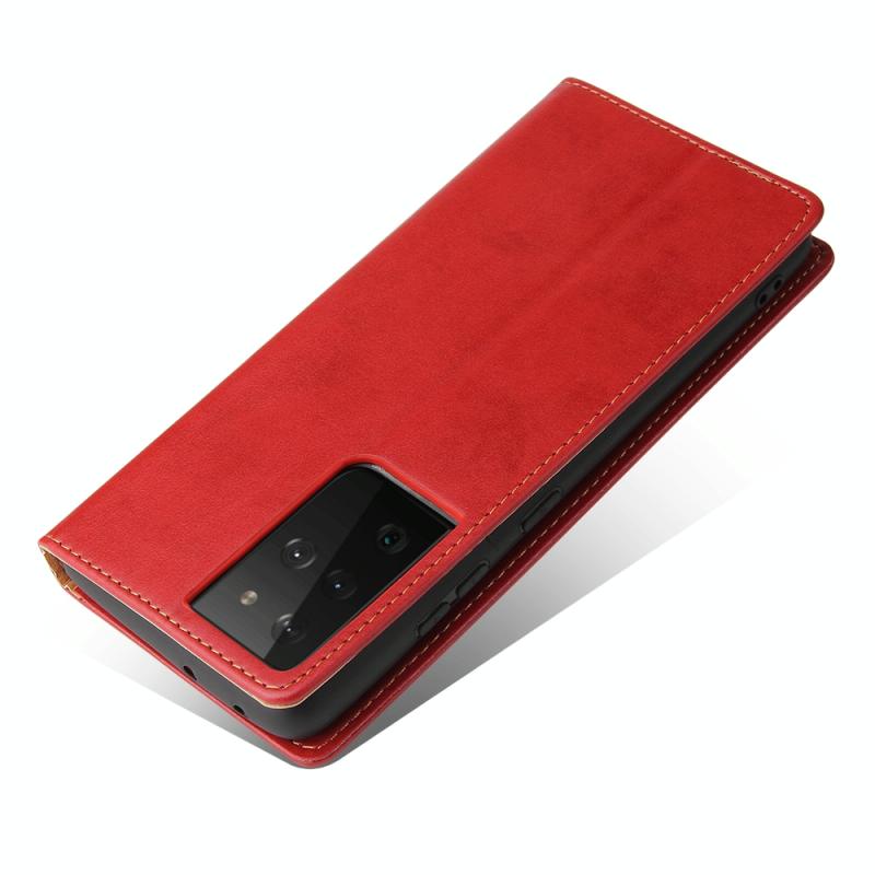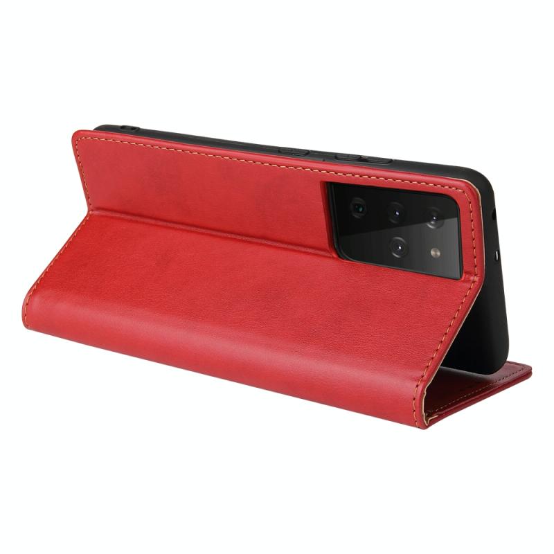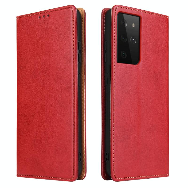 For Samsung Galaxy S21 Ultra 5G Fierre Shann PU Genuine Leather Texture Horizontal Flip Leather Case with Holder & Card Slots & Wallet(Red) (FIERRE SHANN)