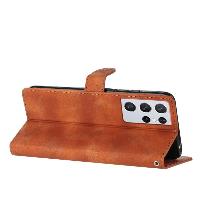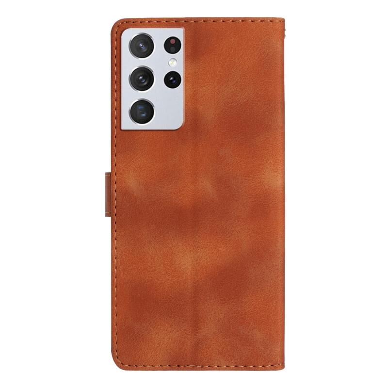 Για Samsung Galaxy S21 Ultra 5G λουλούδι πεταλούδα ανάγλυφο μοτίβο δερμάτινη θήκη τηλεφώνου (καφέ)