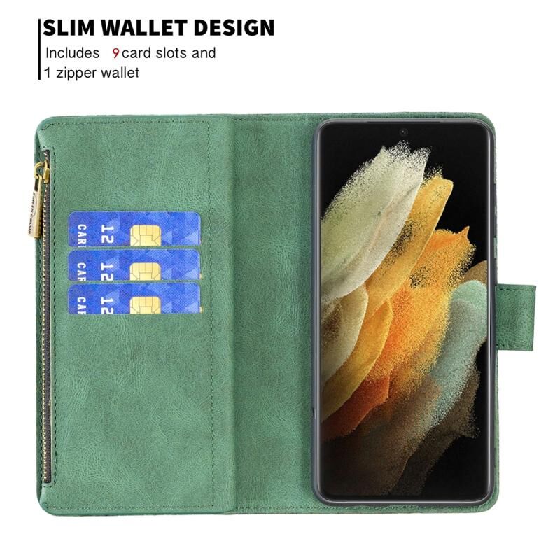 Για Samsung Galaxy S21 Ultra 5G Flying πεταλούδα ανάγλυφο μοτίβο φερμουάρ οριζόντια Flip δερμάτινη θήκη με κάτοχο & υποδοχές για κάρτες & πορτοφόλι (πράσινο)