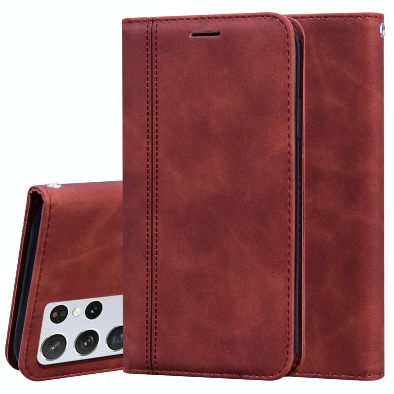 Για Samsung Galaxy S21 Ultra 5G Frosted Business μαγνητική οριζόντια Flip PU δέρμα υπόθεση με θήκη & υποδοχή για κάρτες & κορδόνι (καφέ)
