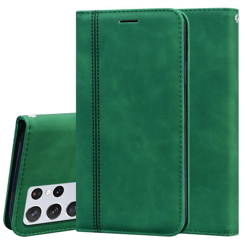 Για Samsung Galaxy S21 Ultra 5G Frosted Business μαγνητική οριζόντια Flip PU δέρμα υπόθεση με θήκη & υποδοχή για κάρτες & κορδόνι (πράσινο)