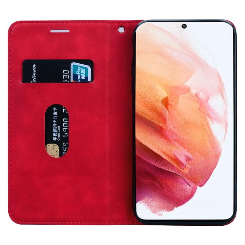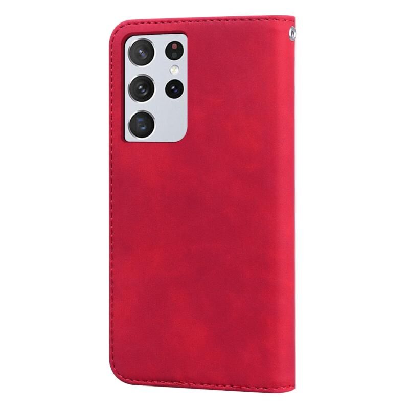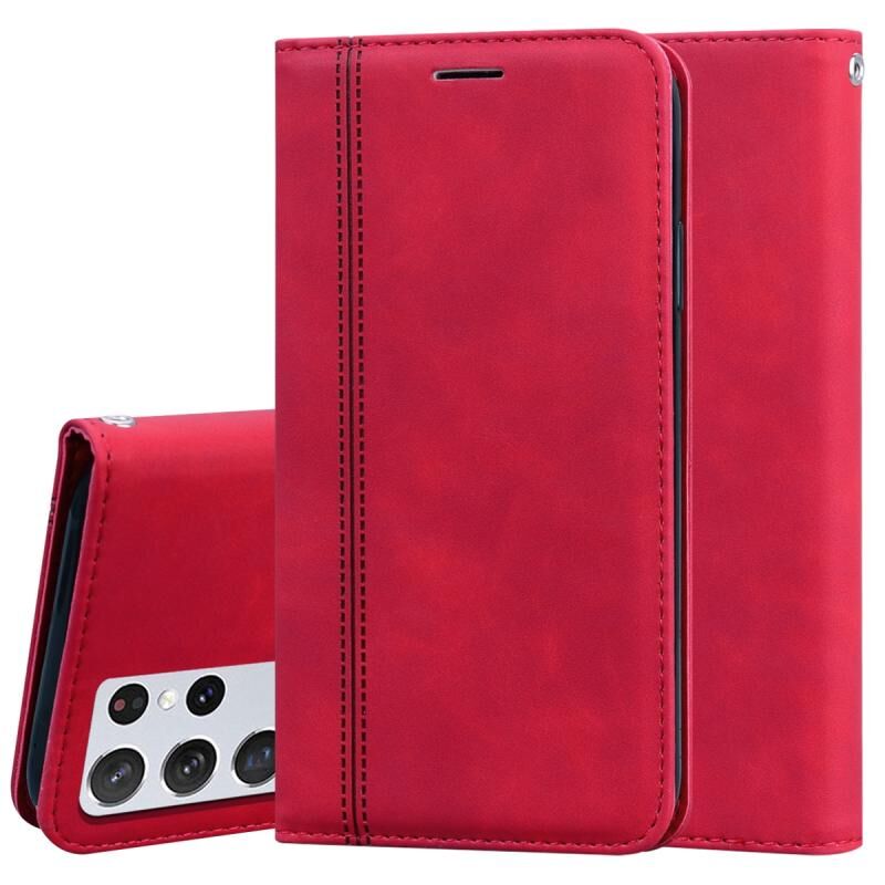 Για Samsung Galaxy S21 Ultra 5G Frosted Business μαγνητική οριζόντια Flip PU δέρμα υπόθεση με θήκη & υποδοχή για κάρτες & κορδόνι (κόκκινο)