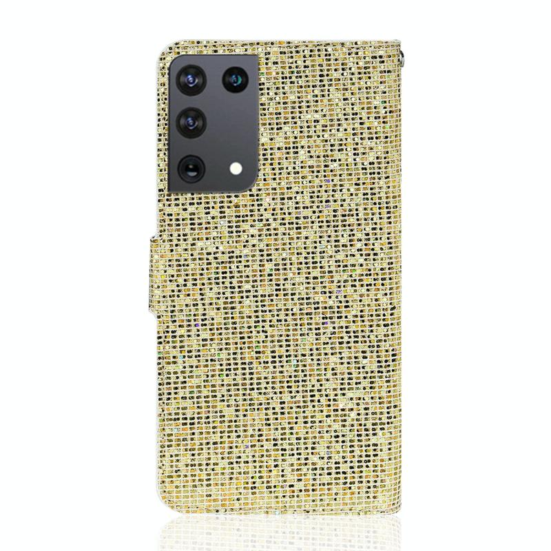 For Samsung Galaxy S21 Ultra 5G Glitter Powder Horizontal Flip Leather Case with Card Slots & Holder & Lanyard(Gold)