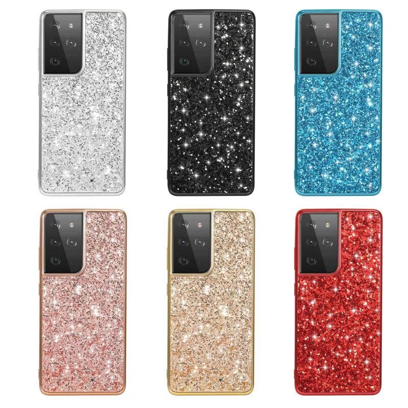 Για Samsung Galaxy S21 Ultra 5G Glitter Powder Shockproof TPU προστατευτική θήκη (Μαύρο)