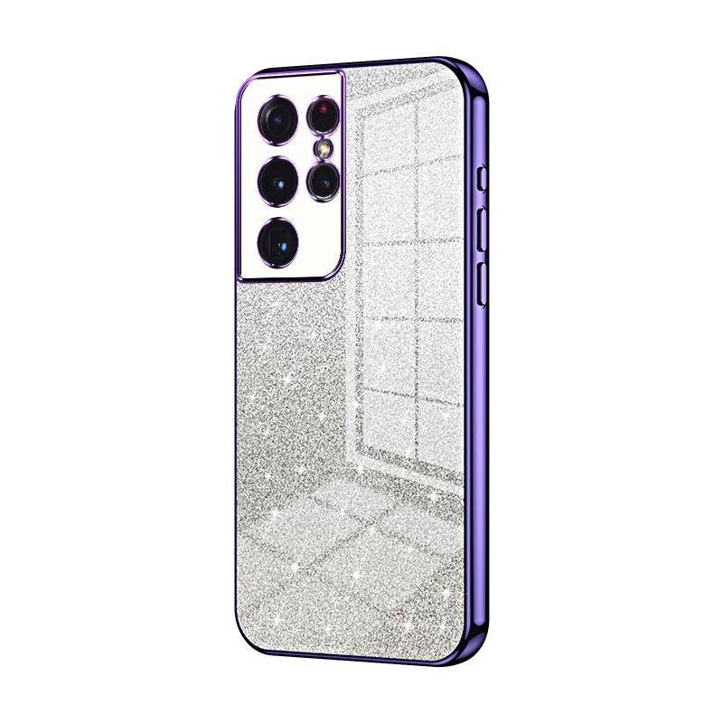 Για Samsung Galaxy S21 Ultra 5G κλίση Glitter σκόνη Electroplated υπόθεση τηλεφώνου (μωβ)