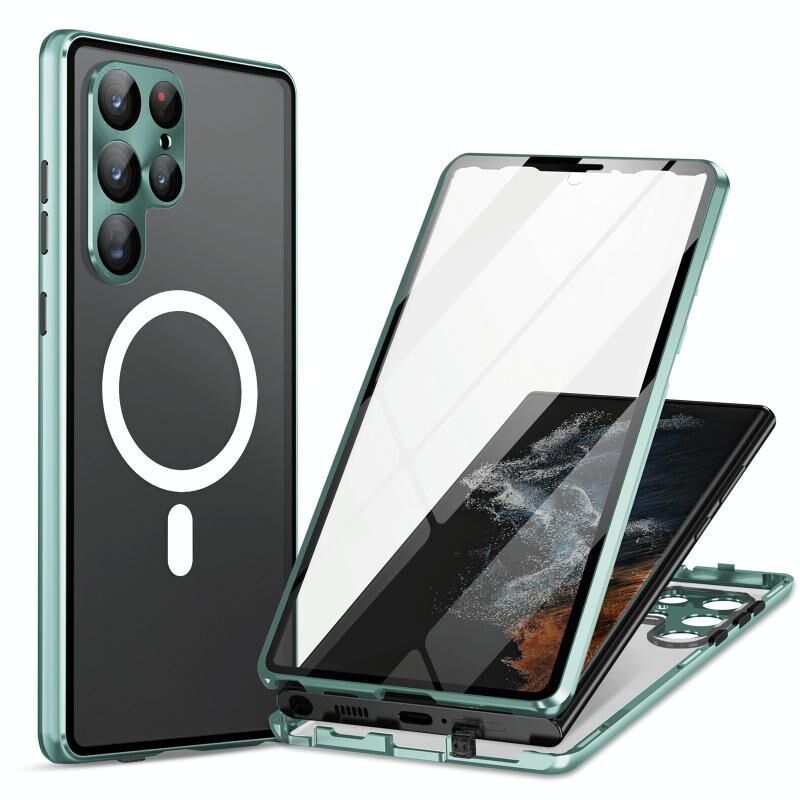 Θήκη τηλεφώνου Samsung Galaxy S21 Ultra 5G, πλήρης κάλυψη HD, MagSafe, μαγνητική, μεταλλική, από σκληρυμένο γυαλί (Μαύρο)