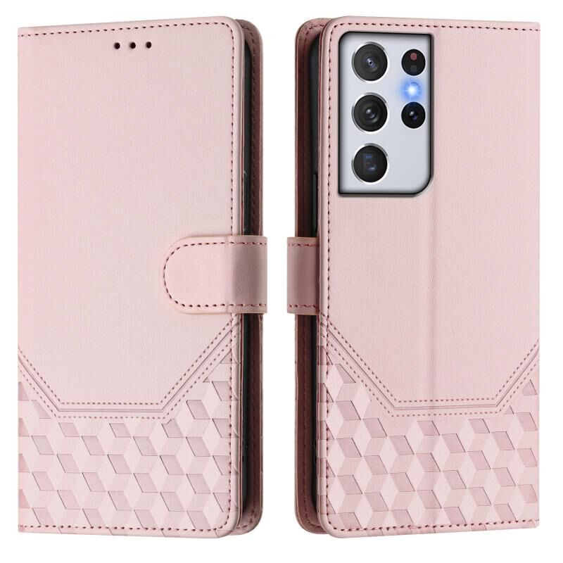 Για Samsung Galaxy S21 Ultra 5G Honeycomb ανάγλυφη RFID δερμάτινη θήκη τηλεφώνου (ροζ)