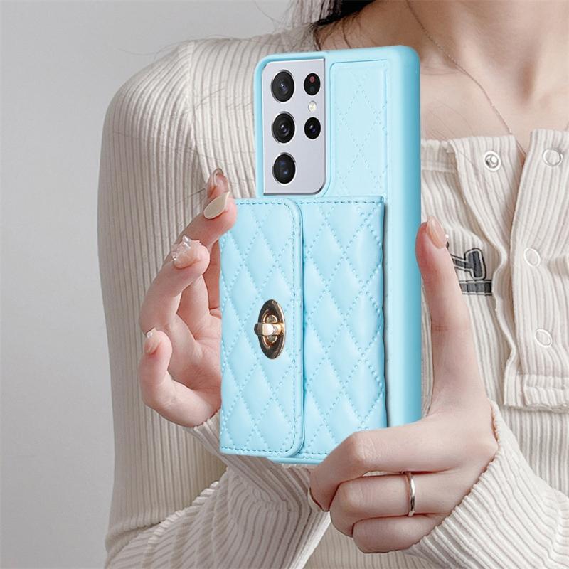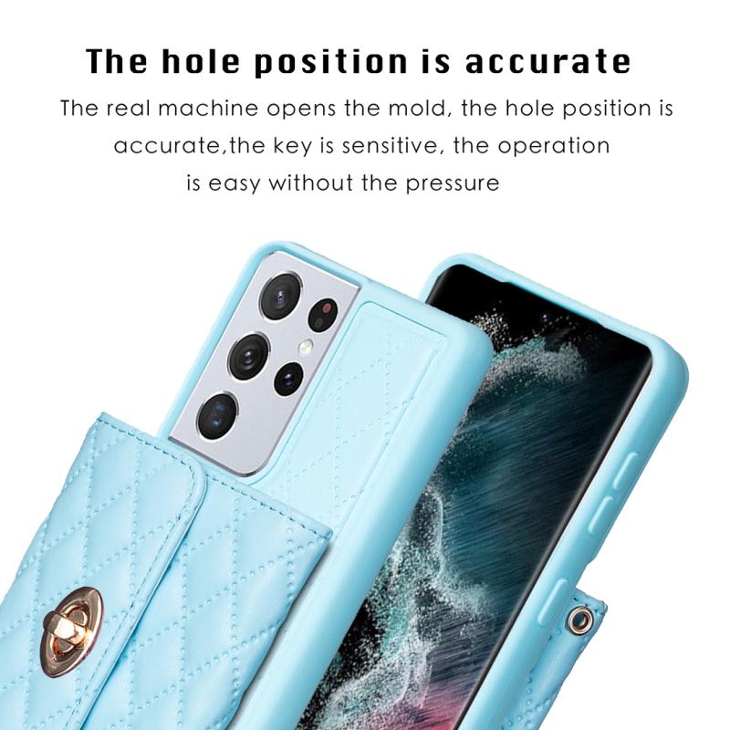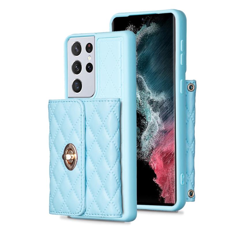 Θήκη τηλεφώνου Samsung Galaxy S21 Ultra 5G, οριζόντια, από δέρμα με ρόμβους και μεταλλική αγκράφα πορτοφολιού (Μπλε)