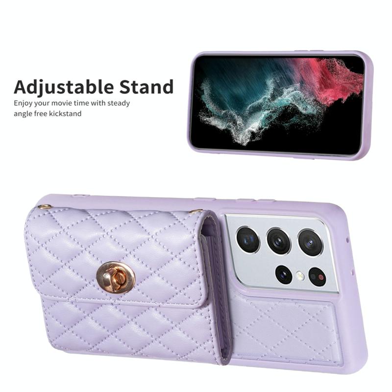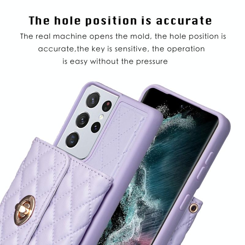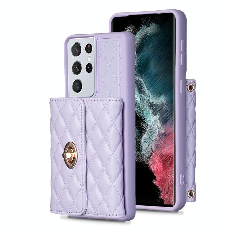 Θήκη τηλεφώνου Samsung Galaxy S21 Ultra 5G, οριζόντια, από δέρμα με ρόμβους και μεταλλική αγκράφα πορτοφολιού (Μωβ)