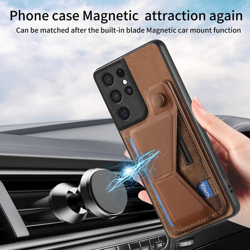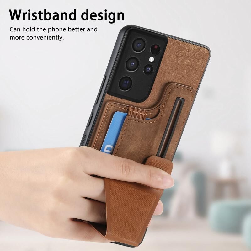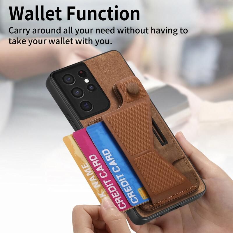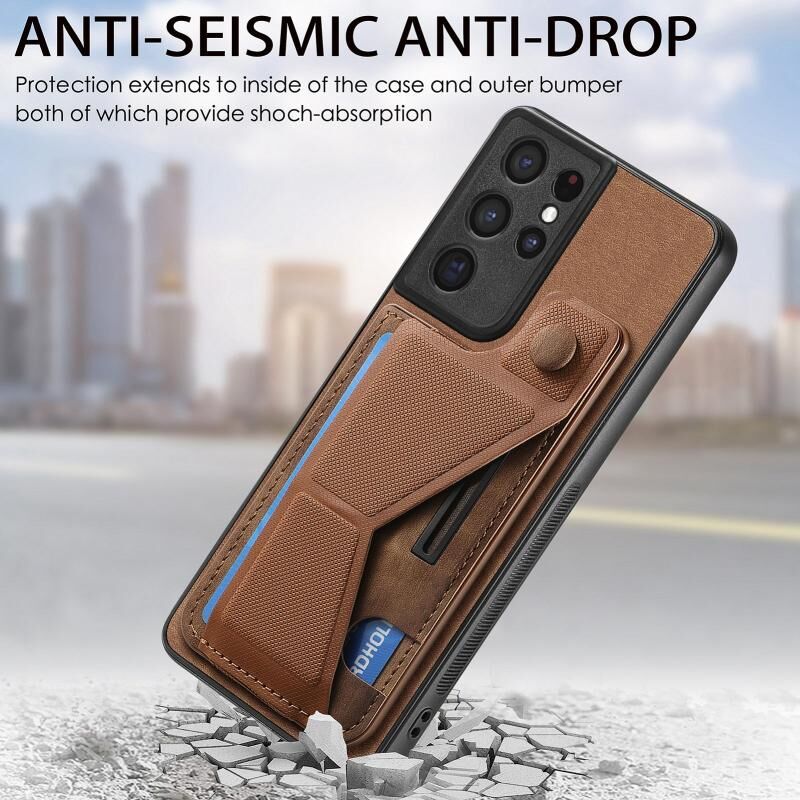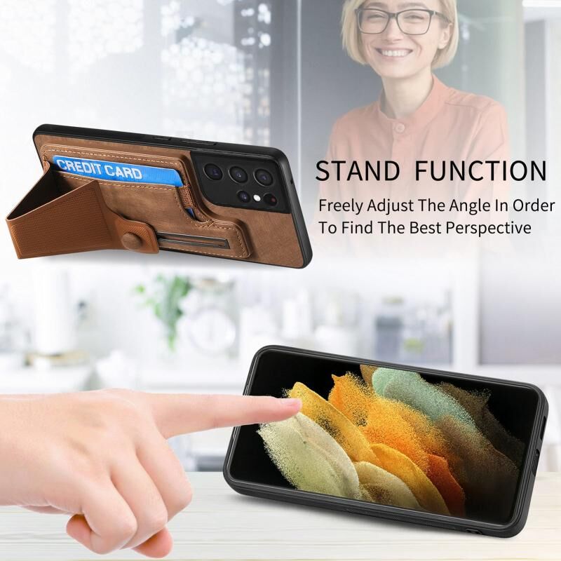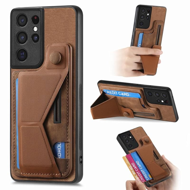 Για Samsung Galaxy S21 Ultra 5G II K-διαμορφωμένο Slide κάτοχος κάρτα υποδοχή τηλέφωνο υπόθεση (καφέ)