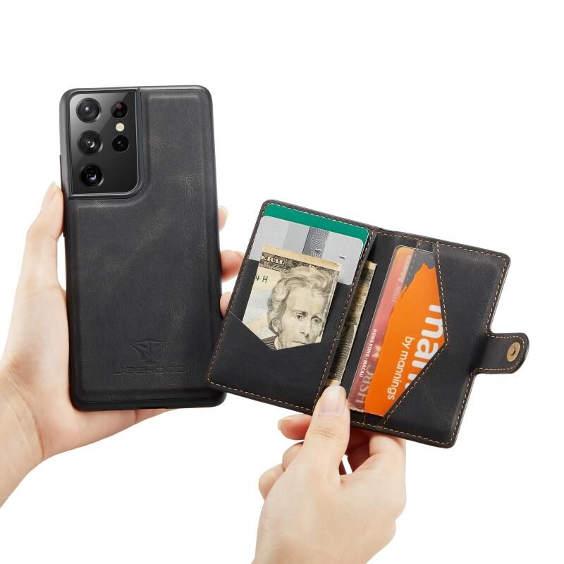 Για Samsung Galaxy S21 Ultra 5G JEEHOOD Ρετρό μαγνητική αποσπώμενη προστατευτική θήκη με πορτοφόλι & υποδοχή κάρτας & θήκη (Μαύρο)