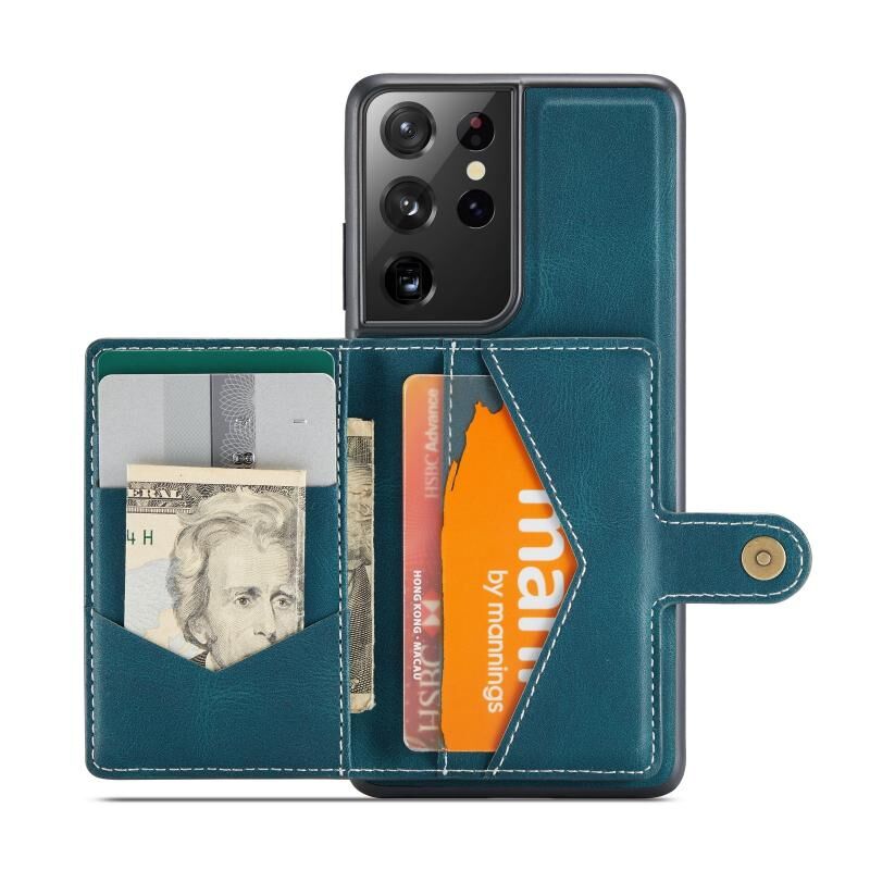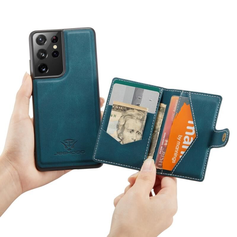 Για Samsung Galaxy S21 Ultra 5G JEEHOOD Ρετρό μαγνητική αποσπώμενη προστατευτική θήκη με πορτοφόλι & υποδοχή κάρτας & θήκη (μπλε)