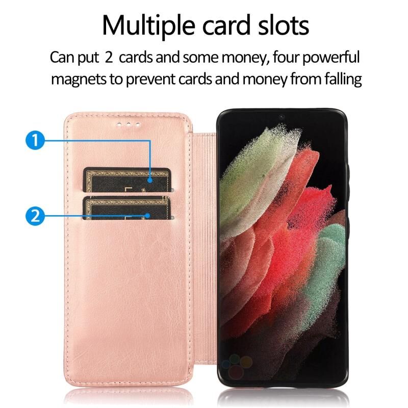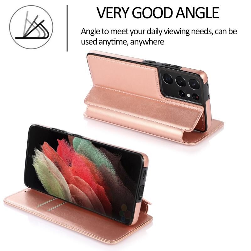Για Samsung Galaxy S21 Ultra 5G Ιππότης μαγνητική αναρρόφηση δερμάτινη θήκη τηλεφώνου (ροζ χρυσό)
