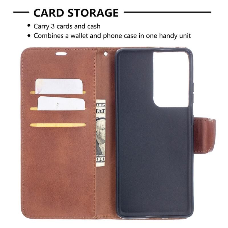 For Samsung Galaxy S21 Ultra 5G Lambskin Texture Pure Color Horizontal Flip PU Leather Case with Holder & Card Slots & Wallet & Lanyard(Brown)