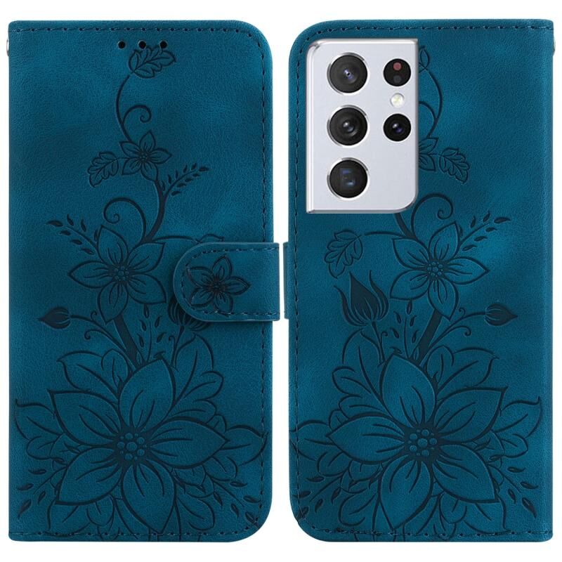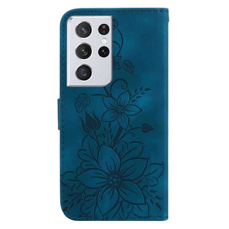 Θήκη τηλεφώνου δερμάτινη ανάγλυφη Lily για Samsung Galaxy S21 Ultra 5G (Πράσινο)