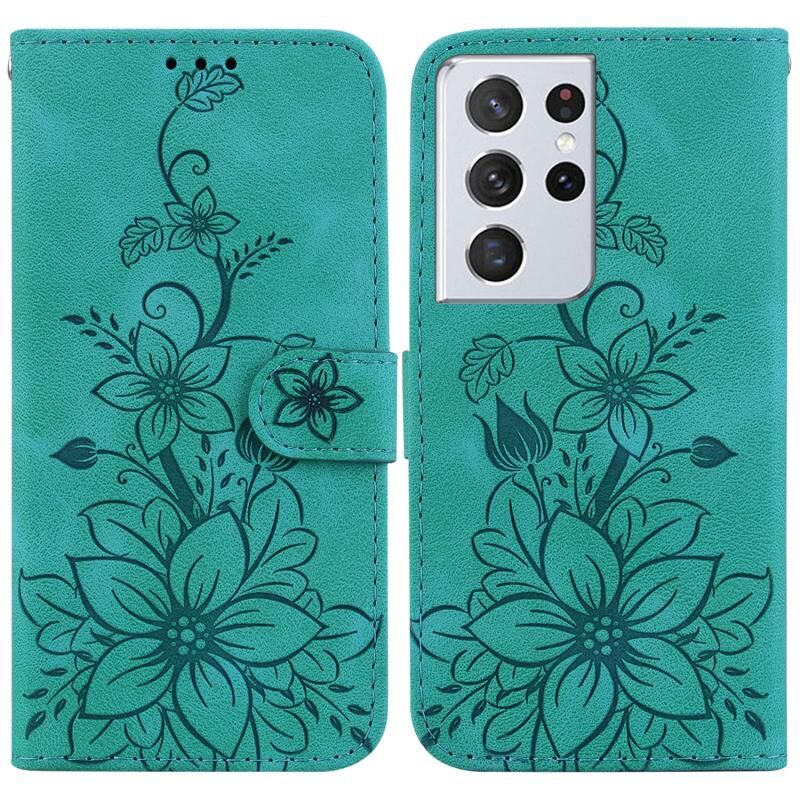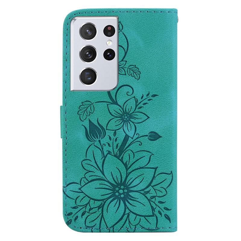 Θήκη τηλεφώνου δερμάτινη ανάγλυφη Lily για Samsung Galaxy S21 Ultra 5G (Πράσινο)