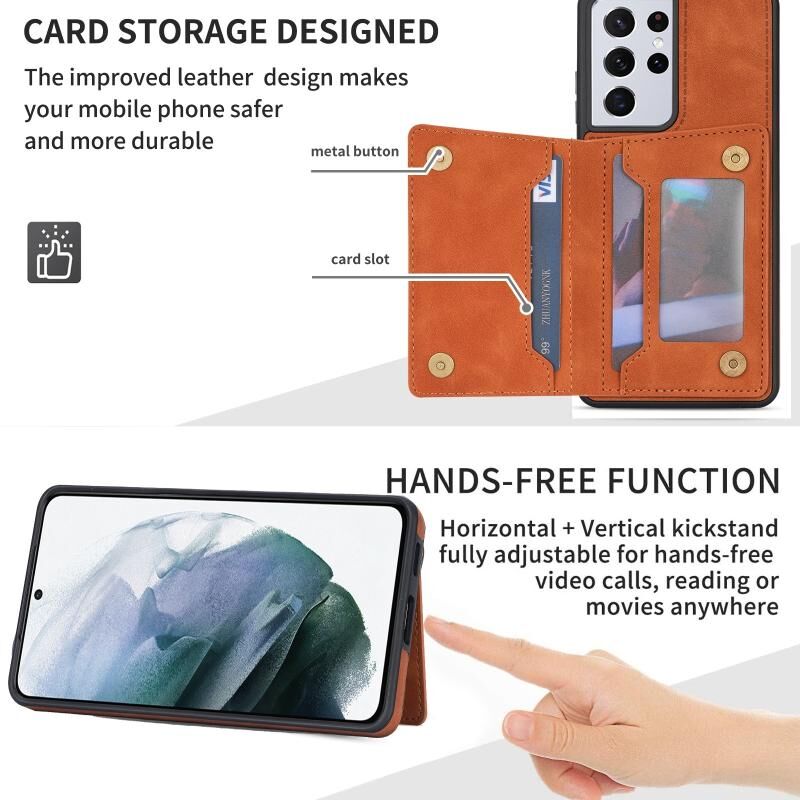 Θήκη τηλεφώνου για Samsung Galaxy S21 Ultra 5G με βάση για κάρτες (Καφέ)