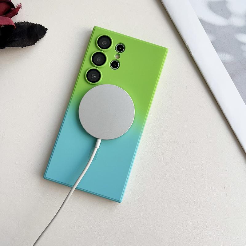 Θήκη τηλεφώνου για Samsung Galaxy S21 Ultra 5G, υγρή σιλικόνη TPU με διαβάθμιση χρώματος, συμβατή με MagSafe (Μπλε Κόκκινο Ντεγκραντέ)