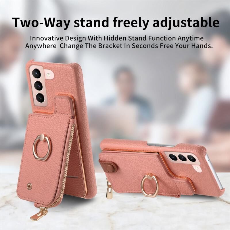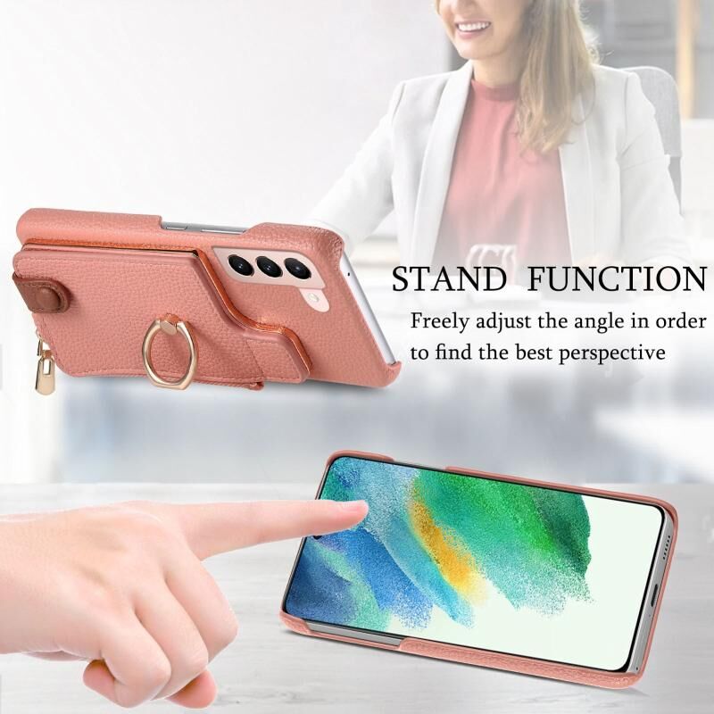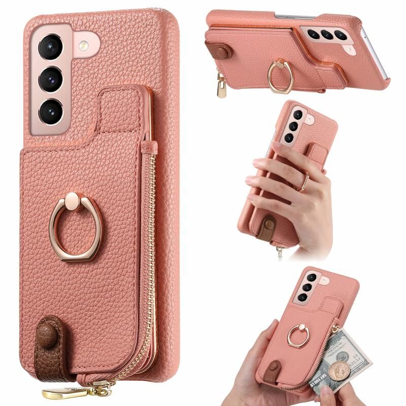Για Samsung Galaxy S21 Ultra 5G Litchi δέρμα λάδι Edge δαχτυλίδι φερμουάρ πορτοφόλι πίσω θήκη τηλεφώνου (ροζ)