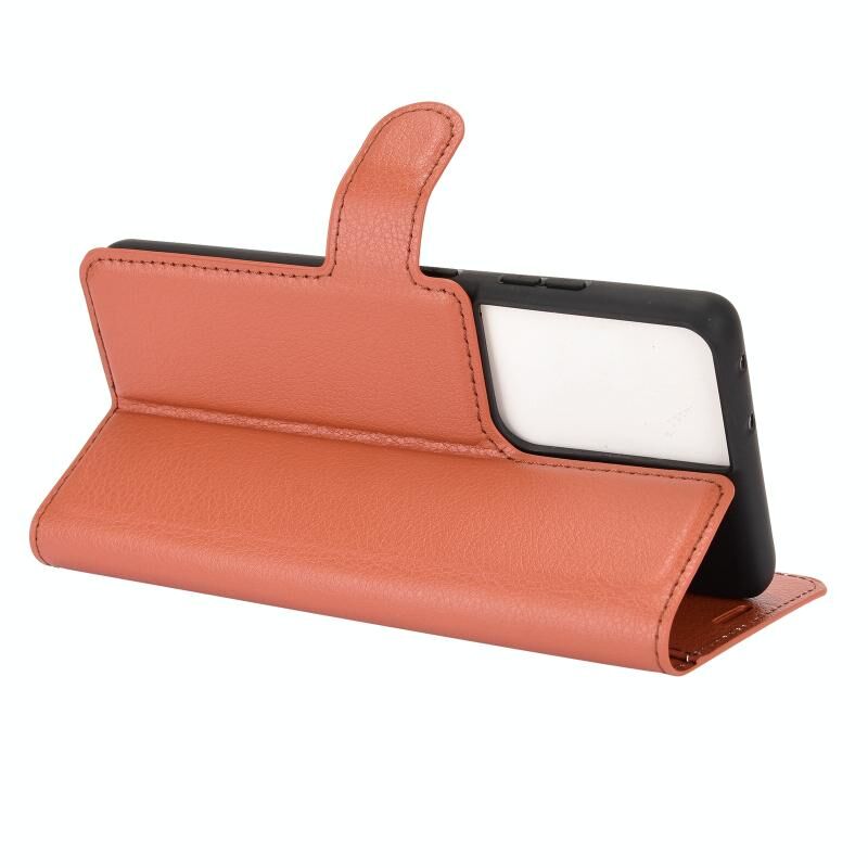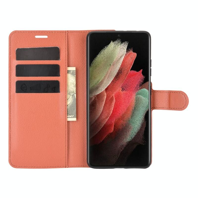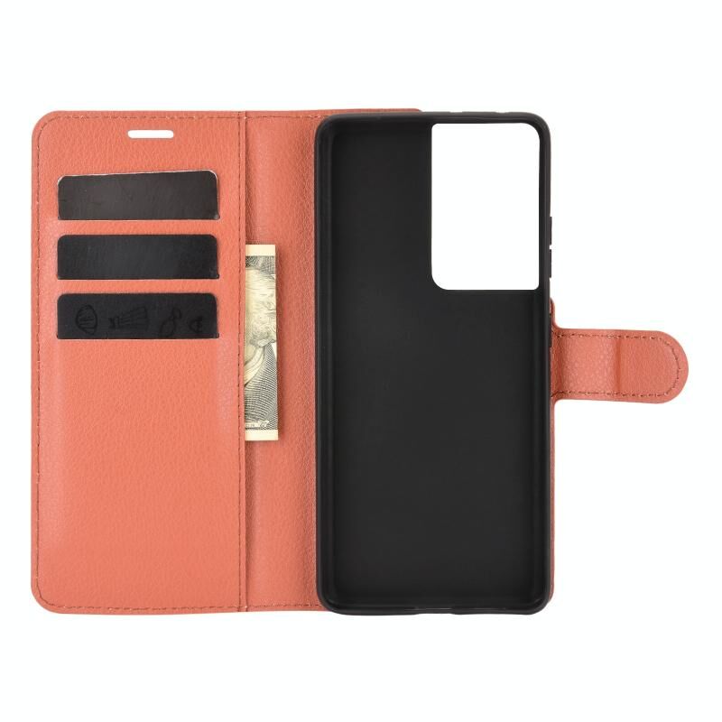 Για Samsung Galaxy S21 Ultra 5G Litchi Υφή Οριζόντια Flip προστατευτική θήκη με θήκη & υποδοχές για κάρτες & πορτοφόλι (καφέ)