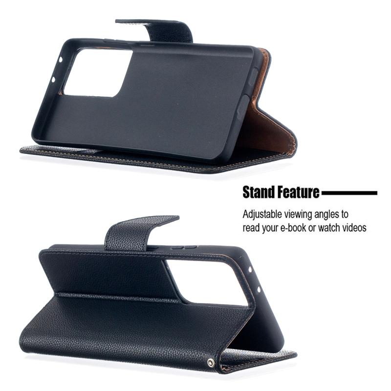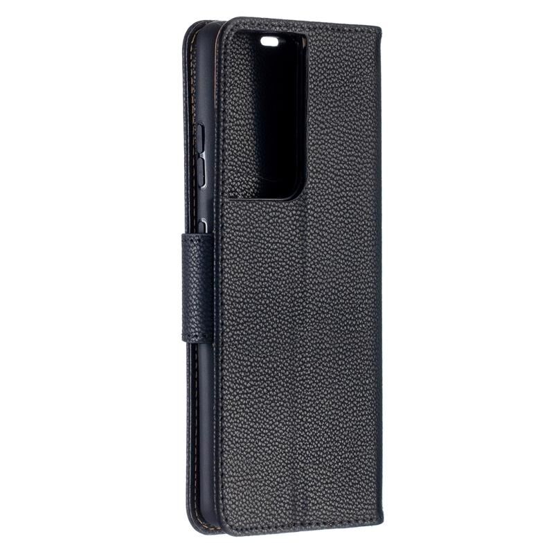 For Samsung Galaxy S21 Ultra 5G Litchi Texture Pure Color Horizontal Flip Leather Case with Holder & Card Slots & Wallet & Lanyard(Black)