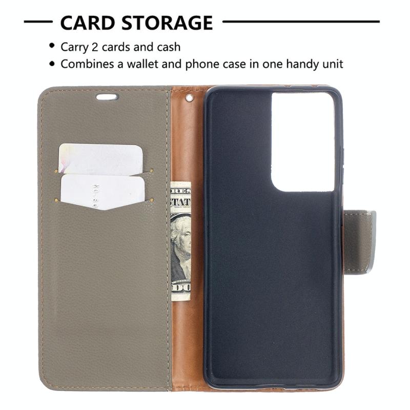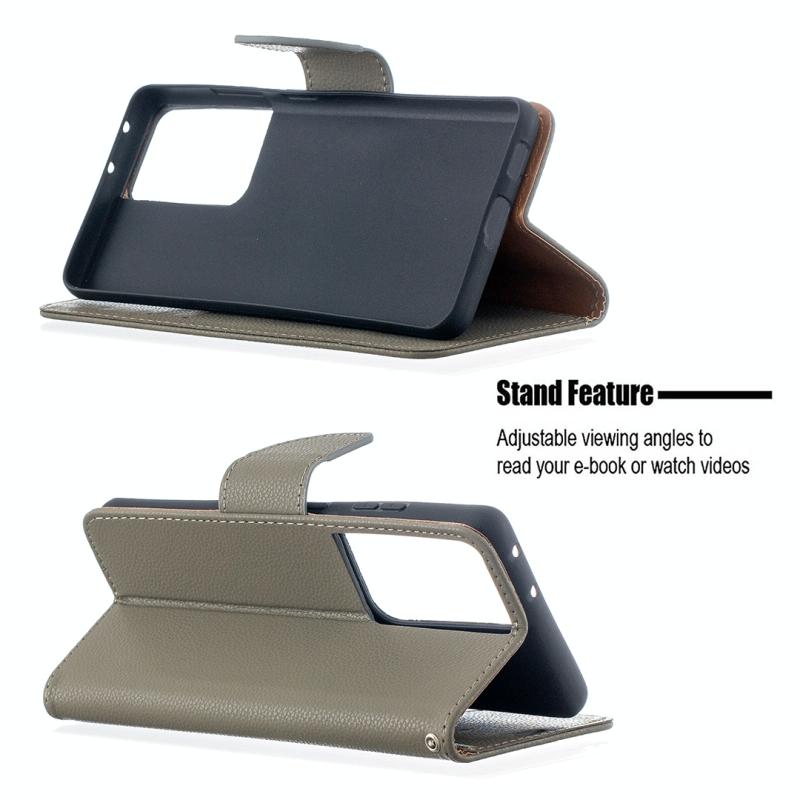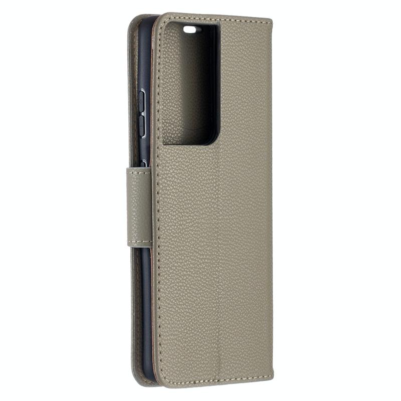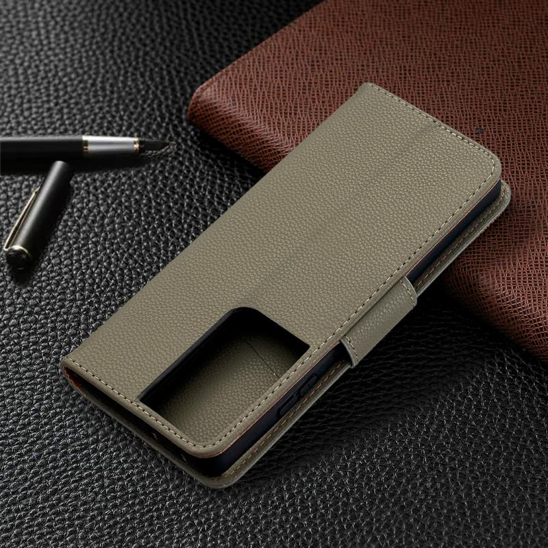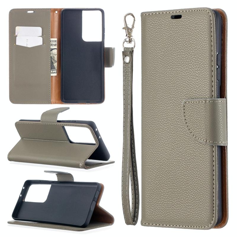For Samsung Galaxy S21 Ultra 5G Litchi Texture Pure Color Horizontal Flip Leather Case with Holder & Card Slots & Wallet & Lanyard(Grey)