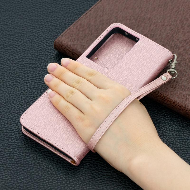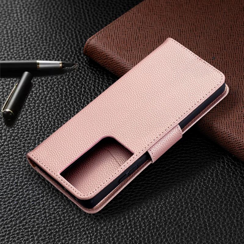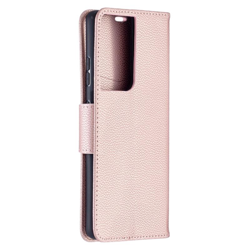 For Samsung Galaxy S21 Ultra 5G Litchi Texture Pure Color Horizontal Flip Leather Case with Holder & Card Slots & Wallet & Lanyard(Rose Gold)