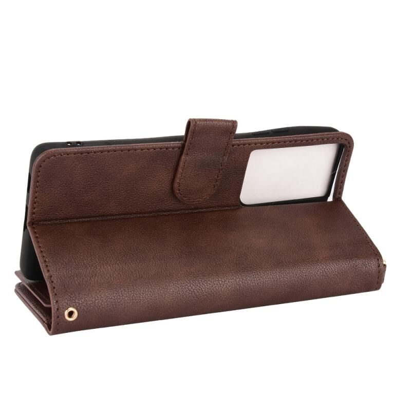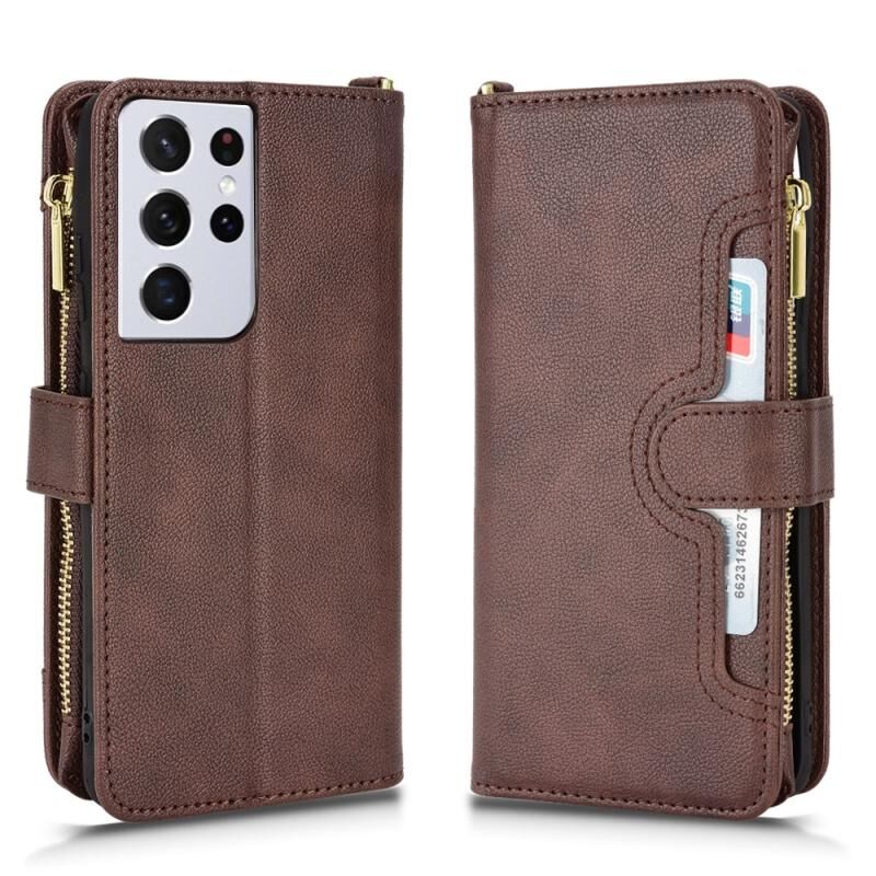 Για Samsung Galaxy S21 Ultra 5G Litchi υφή φερμουάρ δερμάτινη θήκη τηλεφώνου (καφέ)