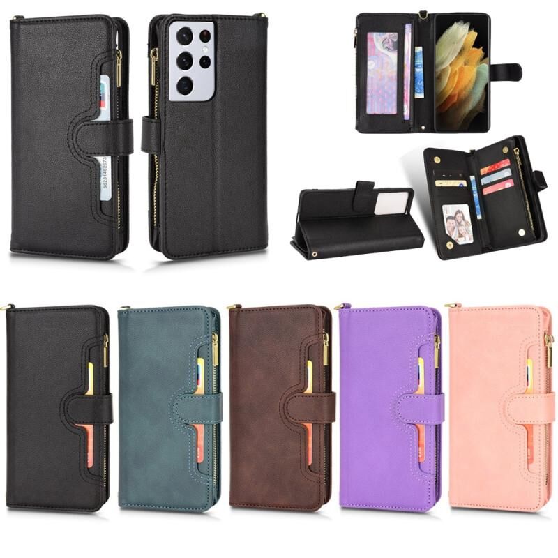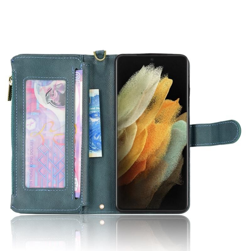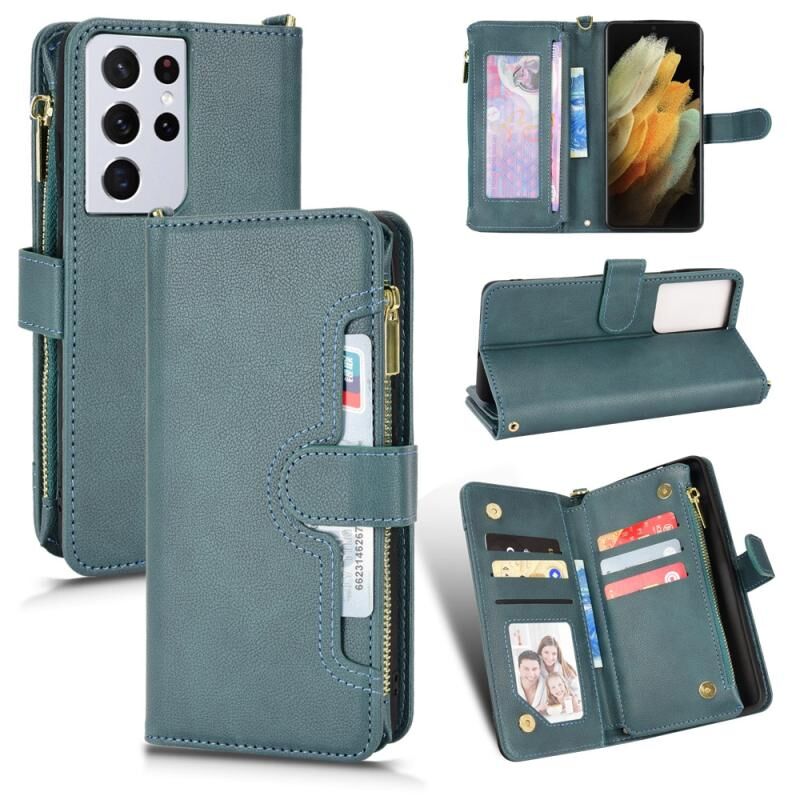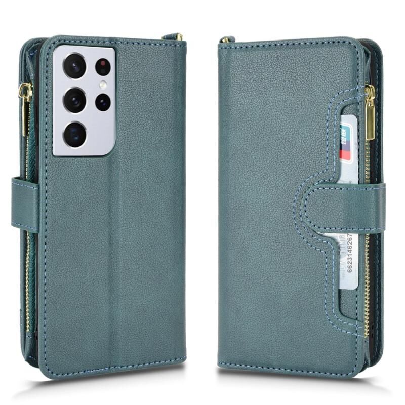 Για Samsung Galaxy S21 Ultra 5G Litchi υφή φερμουάρ δερμάτινη θήκη τηλεφώνου (πράσινο)